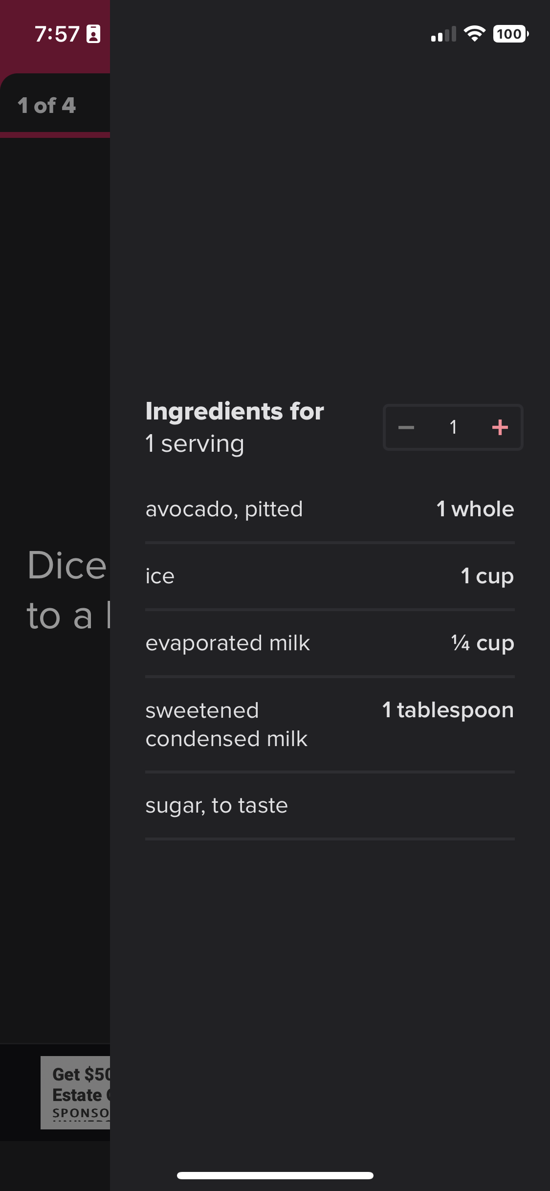 Having the ability to look back at what the ingredients are is extremely important in minimizing having to scroll back and forth to see exact measurements.